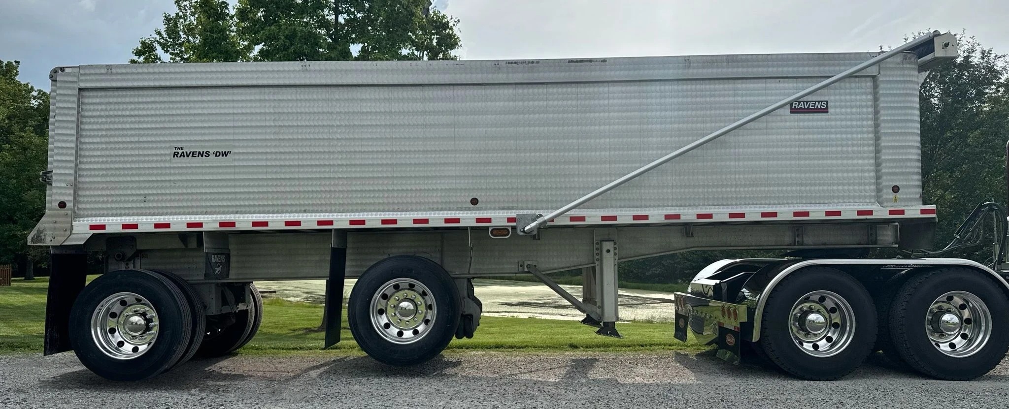 The trailer is in very good working condition. The aluminum body is solid with no cracks or major dents. The ram is strong and operates smoothly, and the air-operated end gate works without issue. It's equipped with a poly liner and a roll tarp, both in good shape. The suspension and air brakes are responsive, and the tires and aluminum wheels are in good condition, no uneven wear. The trailer was recently checked, and it's ready to go straight to work. It's a clean, well-maintained unit with no known issues.