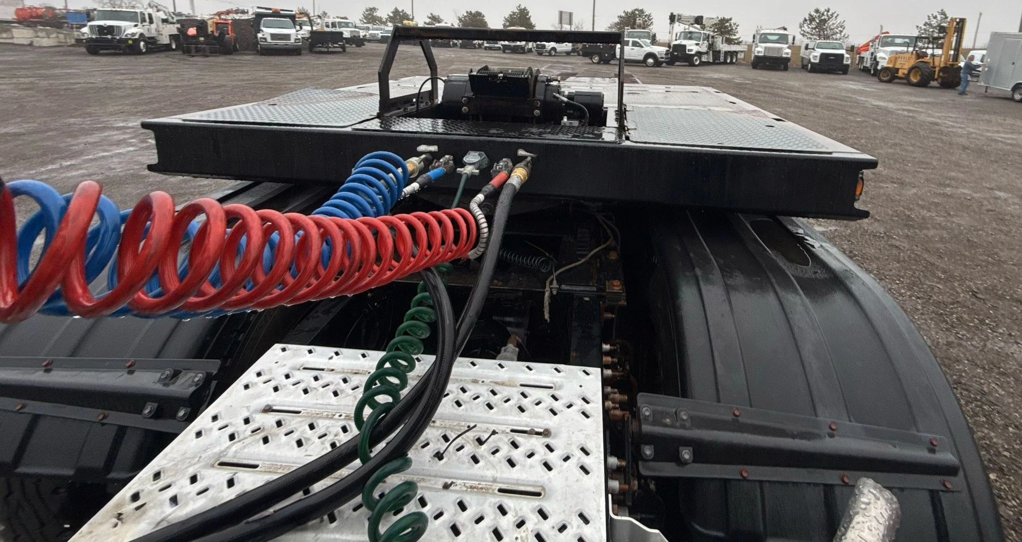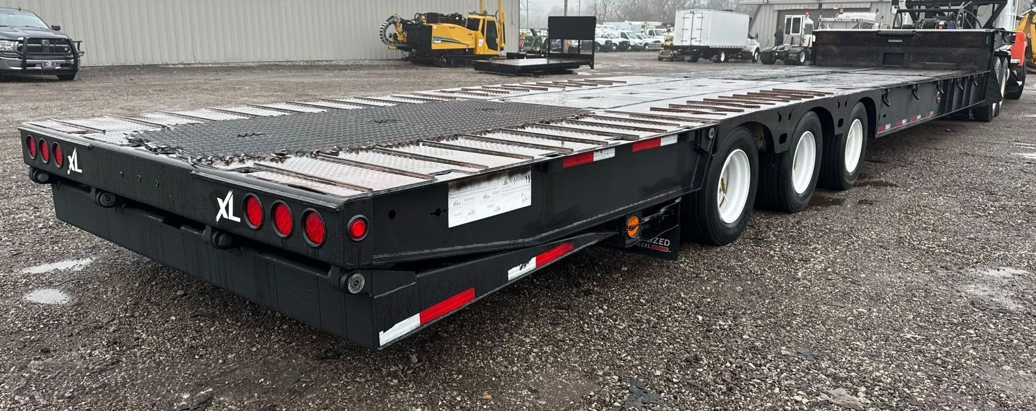 The trailer is in very good working condition, with solid frame integrity and no major rust or structural damage. The deck is straight and strong, showing only normal wear from previous use. Hydraulics operate smoothly, and all air brake components and lighting systems are fully functional. Tires are in good shape, and the suspension system is stable and road-ready. This trailer has been well maintained and is ready to haul heavy equipment with confidence.