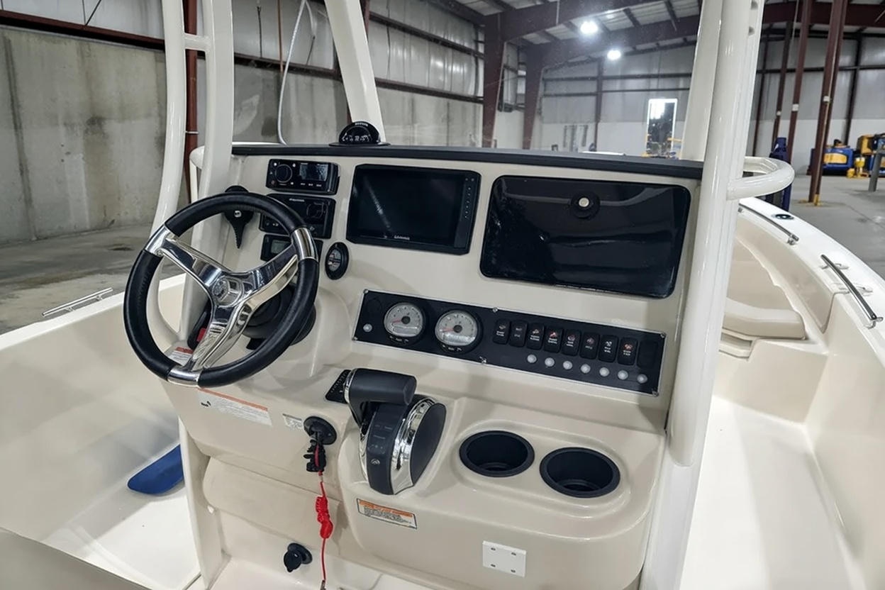 Hit the water with confidence in this exceptionally maintained 2019 Boston Whaler 240 Dauntless, a true hybrid bay boat designed to handle offshore swells, shallow water, and family sandbar days with equal ease. Whether you're chasing tarpon, cruising the Intracoastal, or towing the kids on a tube, the 240 Dauntless delivers with style, comfort, and Whaler's legendary unsinkable hull.