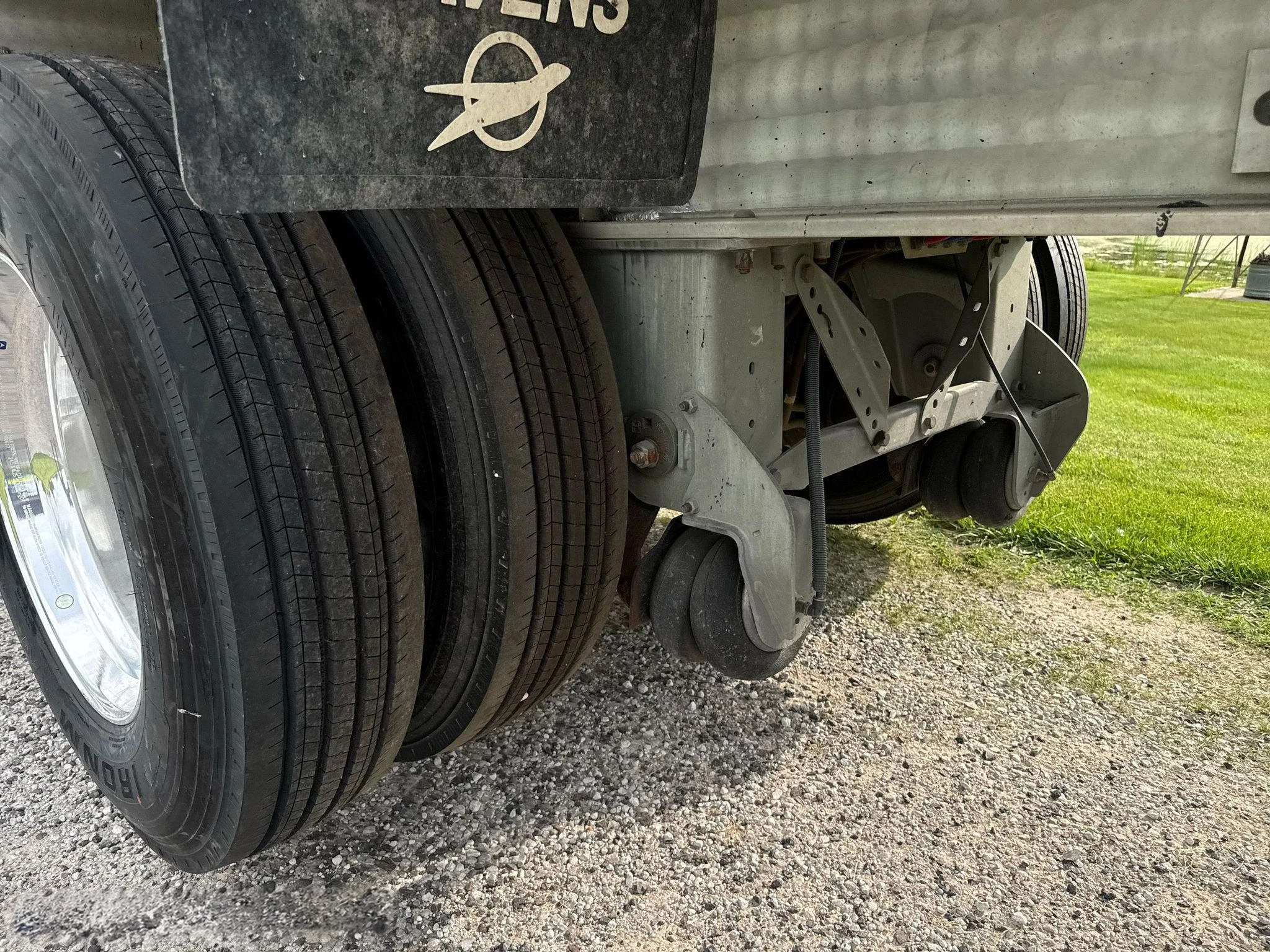 The trailer is in very good working condition. The aluminum body is solid with no cracks or major dents. The ram is strong and operates smoothly, and the air-operated end gate works without issue. It's equipped with a poly liner and a roll tarp, both in good shape. The suspension and air brakes are responsive, and the tires and aluminum wheels are in good condition, no uneven wear. The trailer was recently checked, and it's ready to go straight to work. It's a clean, well-maintained unit with no known issues.
