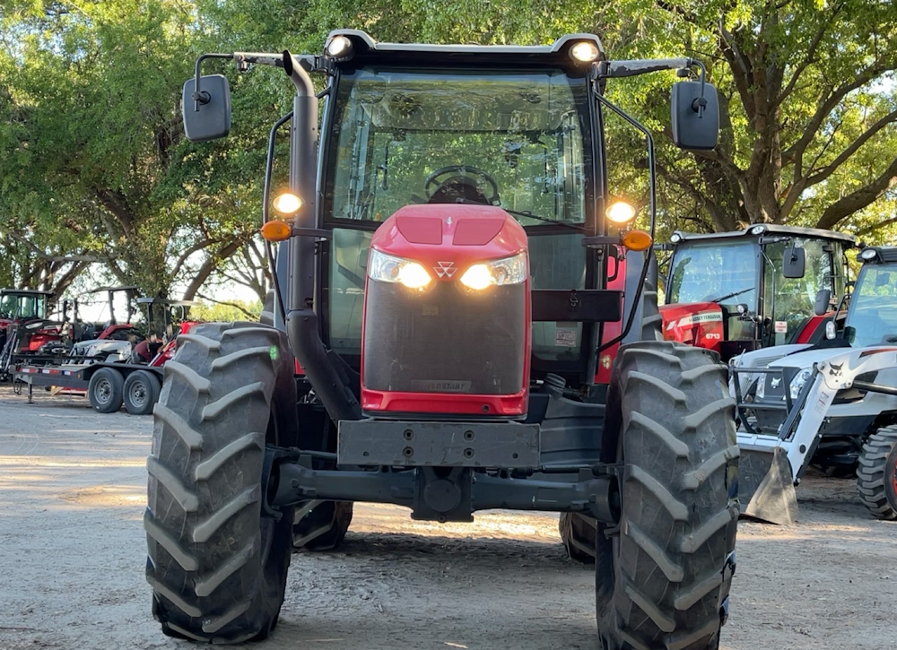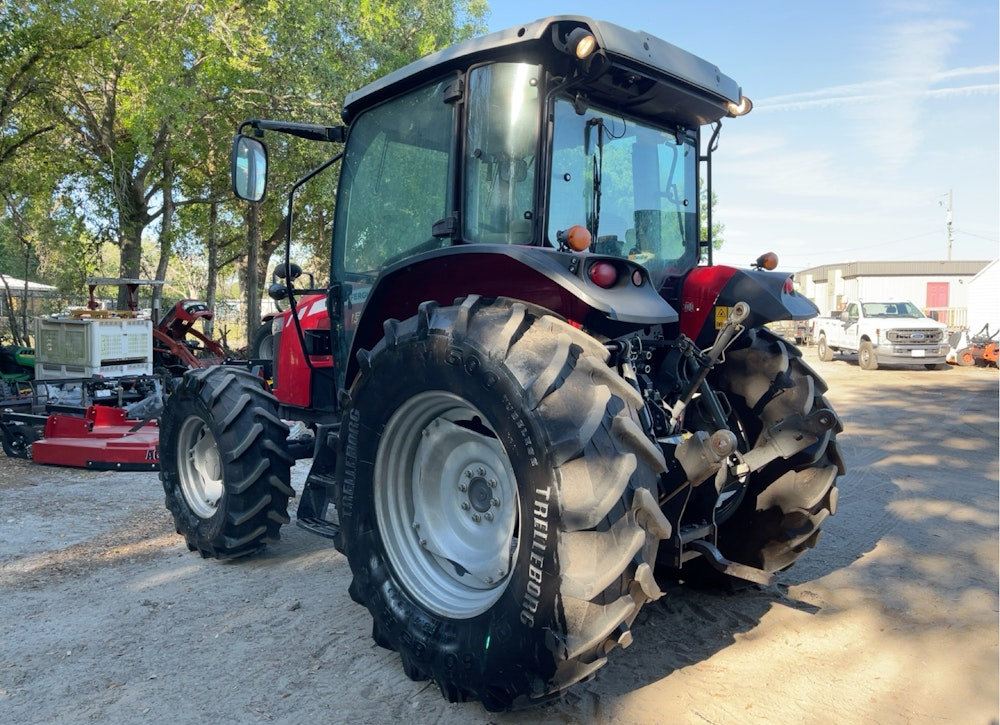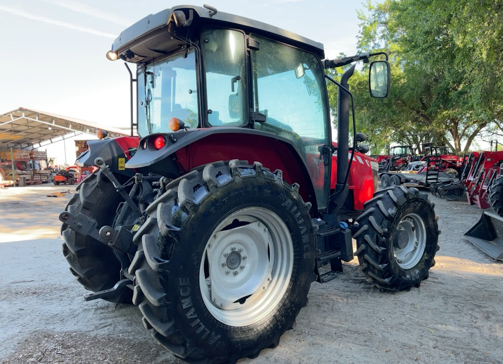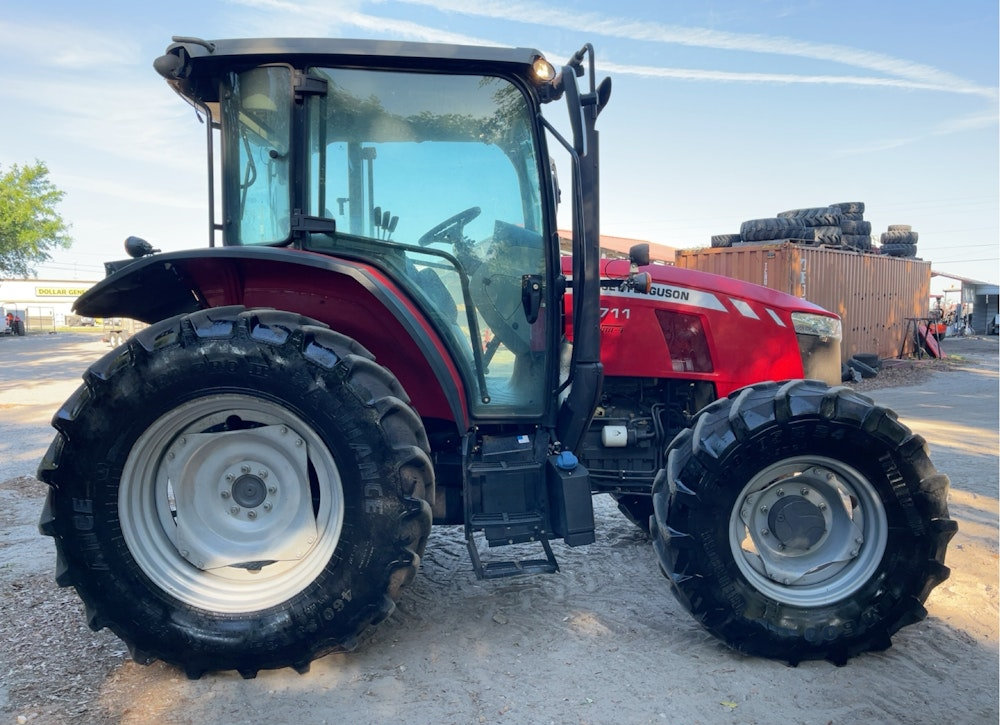 This 2021 Massey Ferguson MF 5711 4WD diesel tractor is in very good condition, well maintained and ready for work. It has been regularly serviced and shows minimal wear, with all major components functioning smoothly. The engine runs strong and efficiently, the transmission shifts flawlessly, and the 4-wheel drive system provides excellent traction in all conditions. The tractor's hydraulic and PTO systems operate reliably, making it ideal for a variety of farm and utility tasks. The tires are in great shape with plenty of tread left, and the overall appearance is clean and well cared for. This tractor is a dependable machine built to handle demanding jobs with ease.